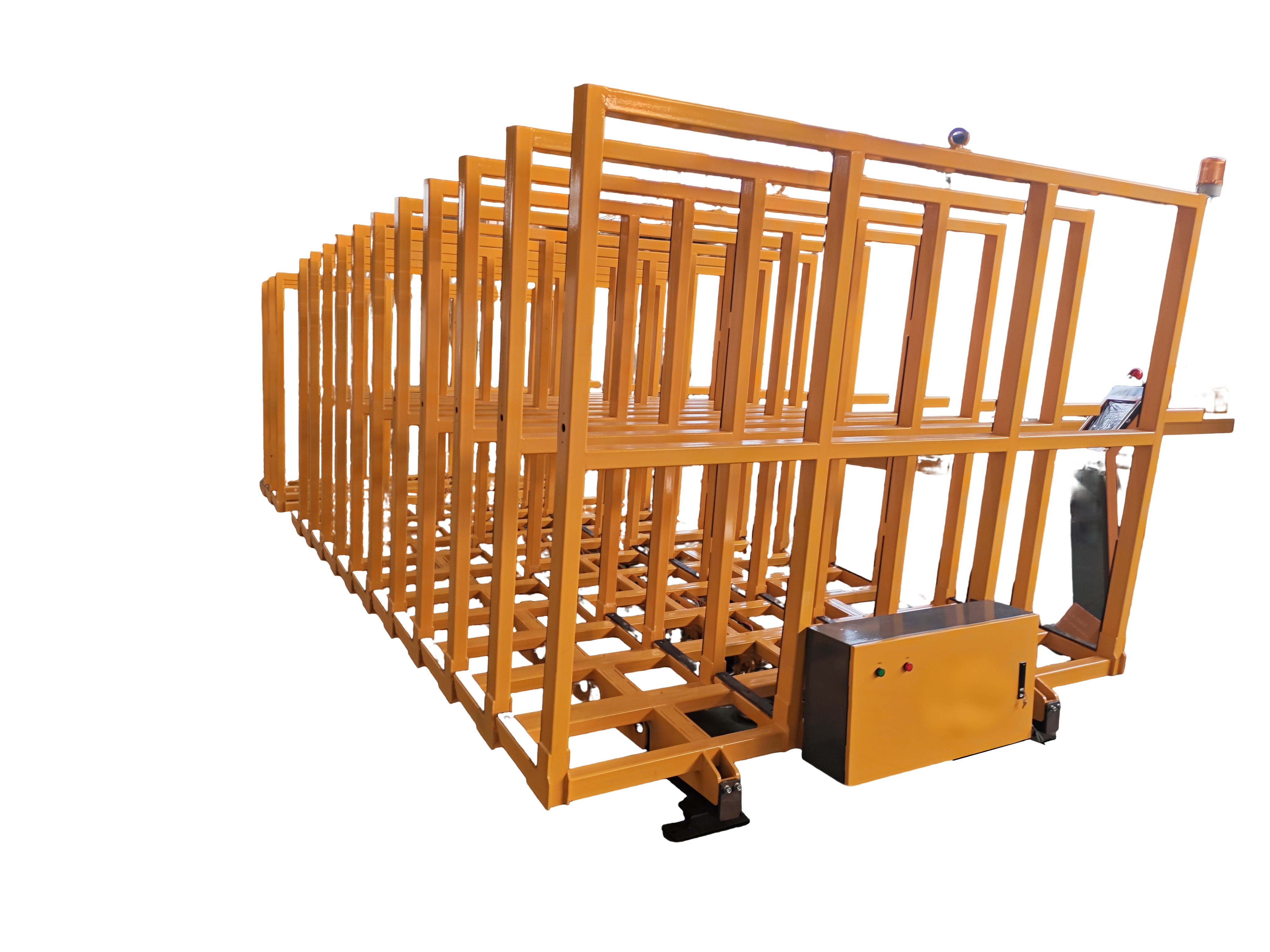 Offline glass storage system is an efficient and automated solution for glass storage. The system achieves safe storage of glass sheets through a dense storage rack structure and automated control technology.